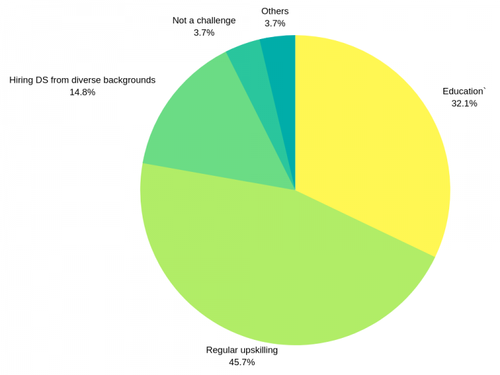 有趣的是,在所有规模的组织中,16%的企业都面临着人才短缺这一重要问题。这让我们感到惊讶,因为提供分析和数据科学教育的机构、mooc和在线资源的数量正在稳步增长。
