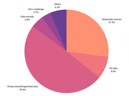 数据对这个行业的重要性不言而喻,49%的受访者表示可用数据存储问题或数据碎片化是一个关键障碍。