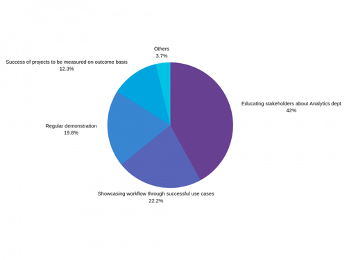 分析和数据科学是一个大多数管理者认为可以取得非凡成绩的领域。但很多时候,它会适得其反,与行业本身背道而驰。42%的受访者表示,对利益相关者进行关于分析部门工作的教育,,如工作流、时间框架、结果等等,将有助于简化流程。