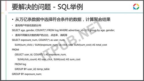 下面讲在线实时的计算,这个要解决的场景就是OLAP的分析,比如将原始的广告日志数据放在那儿,大家可能想到什么查什么,但没有统计好相应的报表,现在就要去分析上面的东西,需要在什么量级能够达到我的结果、能够去做这种运营的决策。