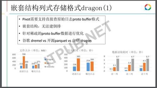 为什么呢?因为业务数据是比较稀疏的,有很多的空节点,这就浪费了比较多的存储。这个无法破解,因为没法和数据进行兼容,所以就直接研发了一个模式,像之前的编码优化等等,最后达到的效果是,对比之前的模式减少百分之四五十左右的存储,生成速度是Pivot的1/3左右,读的速度比行存储提高了几十倍。