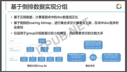 索引设计对倒排和正排分别做了相应的优化,倒排的话,大家知道一个数据的储存,稀疏数据用array是比较高效的,而稠密的数据用bitmap是比较高效的,综合两者特点用一种叫roaring bitmap的方式来去实现,在实现的过程中做了比较多的在底层编码级别的优化和改进,使得在roaring bitmap中交、并、差、积的计算能够做得非常高效。