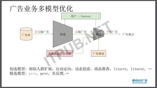 广告业务是有非常多的模型训练的,因为广告直接有现金收益的,所以大家研究这个技术的动力应该会更强。初选模型比如说相似人群扩展,自动定向,动态创意,商品推荐,最原始是广告主指定围绕一下什么样的人,但现在可以根据数据先做冷启动,自动做相应的定向、动态生成广告的创意、与其他公司广告主的商品部相结合、自动推荐商品等等。