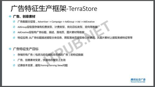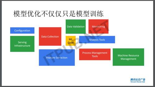 腾讯自己构建的广告数据管理平台,用来补足腾讯里面除社交数据之外的商业数据,把广告数据的变化、后续用户的行为归到广告曝光和点击上,形成数据的闭环,提升整个广告系统的转化率。对于广告系统来说,机器学习和模型训练也是一个非常重要的环节,广告中会经过各种各样的模型的训练提高点击率转化率,进行自动录像、人群的推荐、商品的推荐等等。