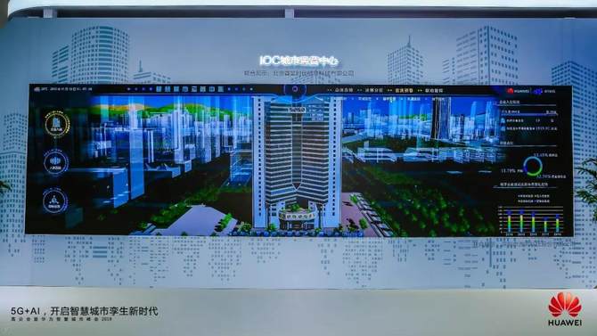 来到华为展台,我们第一眼看到的永远是城市运营中心IOC,因为它是城市的智慧大脑,具有4大中心的功能,即决策中心、预警中心、治理中心和指挥中心。