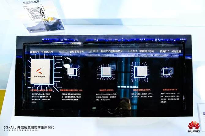 在展台中,华为展示了“算、传、存、管、智”五大自研芯片,基于“华为鲲鹏+昇腾”,提供面向端、边、云全场景下的算力,携手客户、合作伙伴和标准组织共同构建绿色、开放的鲲鹏计算产业生态,为客户提供性能出众,能效更优、安全可靠的解决方案。