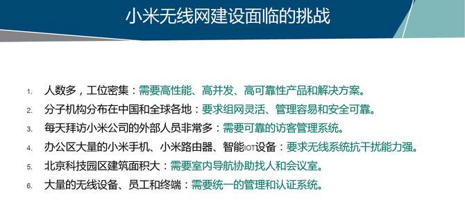 “除了满足小米在园区无线网的要求,我们还有分支/远程接入解决方案为小米公司提供帮助。”范岩峰说。