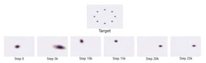 对于模式崩溃,模型只学习多模式数据集的一个或几个模式。我们训练GAN的数据通常有非常多的模式,这使得模式崩溃存在一定的问题。