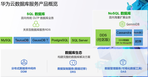 在2019年华为全联接大会上,华为云一口气发布了多模NoSQL数据库GeminiDB、云原生分布式数据库TaurusDB和GaussDB T三个数据库新品,以及MySQL云灾备及RDS for MCS两个解决方案,进一步完善了华为云数据库全栈能力。