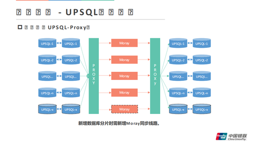 下面看一个比较复杂的场景,这里会有一个新朋友叫proxy。实际业务场景里银联的数据体量是非常大的。拿银联无卡系统来举例,每天生成的交易量均过千万,单一的MySQL是无法支撑这样规模的数据量的。为了实现部署数据库集群,银联自主研发了中间件UPSQL-Proxy,实现了自动的分库分表、SQL路由、自动扩缩容以及数据库高可用,时至今日,这个技术路线已经发展成了分布式数据库叫UPDRDB。银联的DRDB通过自主研发的MySQL 存储引擎插件,协调整个数据库集群,给用户提供像单机MySQL一样的体验。